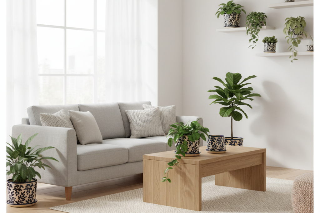 Cuando sientes que a tu sala le falta algo, una maceta Almaterra lo cambia: cerámica artesanal de edición limitada, cero plástico, diseño que eleva tu espacio. Y si no sientes el cambio, te acompañamos hasta lograrlo.